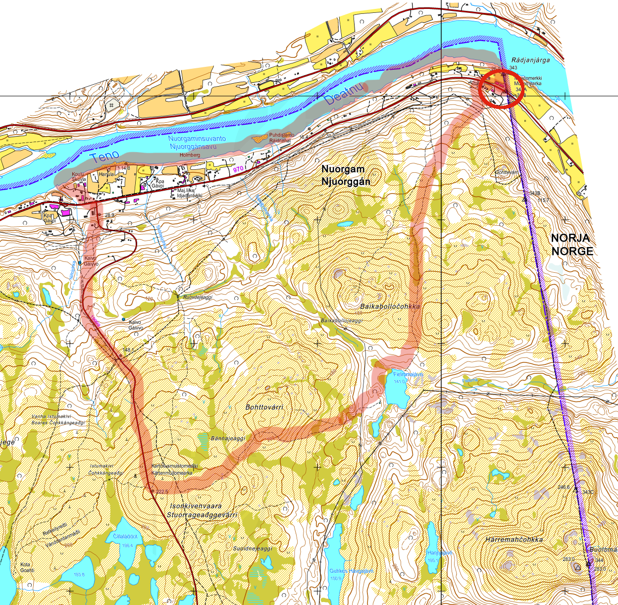 Lähtö jostakin Nuorgamin kylän rajalta, juostaan kylää kiertävän poroaidan ulkopuolelta kylä eteläpuolelta ympäri. Tehtäneen sen verran lisäkurvia, että käväistään katsomassa maisemat isonkivenvaaralla / kartoitusmuistomerkillä. Kylän pohjoispuolelle eli Tenon rantaan kurvataan jostakin sopivasta kohdasta ja juostaan Tenon kivikkoista uomaa pitkin kylää ympäri pohjoispuolelta ja päädytään lopulta samaan pisteeseen mistä lähdettiin. Reitille osuneepi hieman maantietäkin isonkivenvaaralta takaisin kylälle juostessa tai sitten toistepäin. Voi olla että aloitetaankin Tenon rannasta ja tullaan maaliin tunturien suunnalta. Matkaa kertynee 12-15km. Heinäkuussa Tenon vesi on toivottavasti sen verran alhaalla, että mahdutaan uomaan juoksemaan:) Tiedossa on Tenon rannassa erittäin kivikkoista ja mahdollisesti varpaatkin kastuvat: