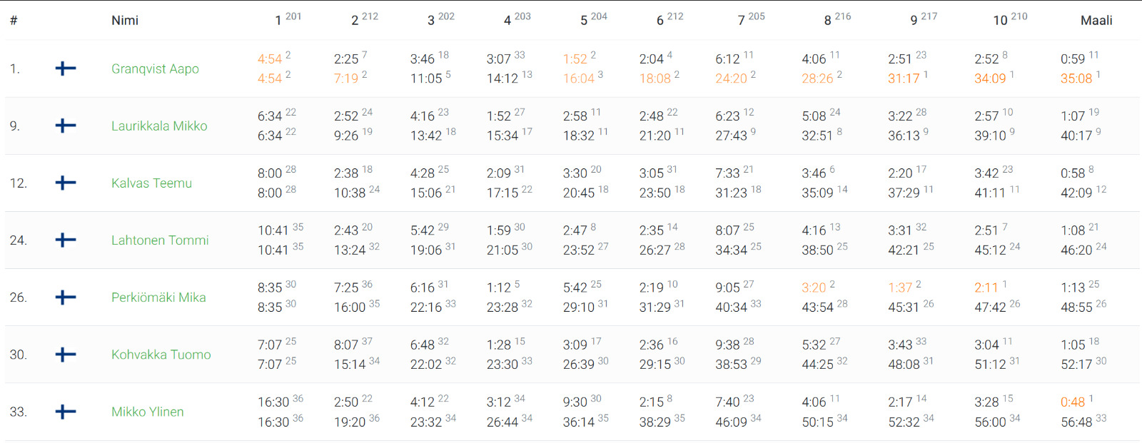 Täydelliset tulokset: Raceresultissa